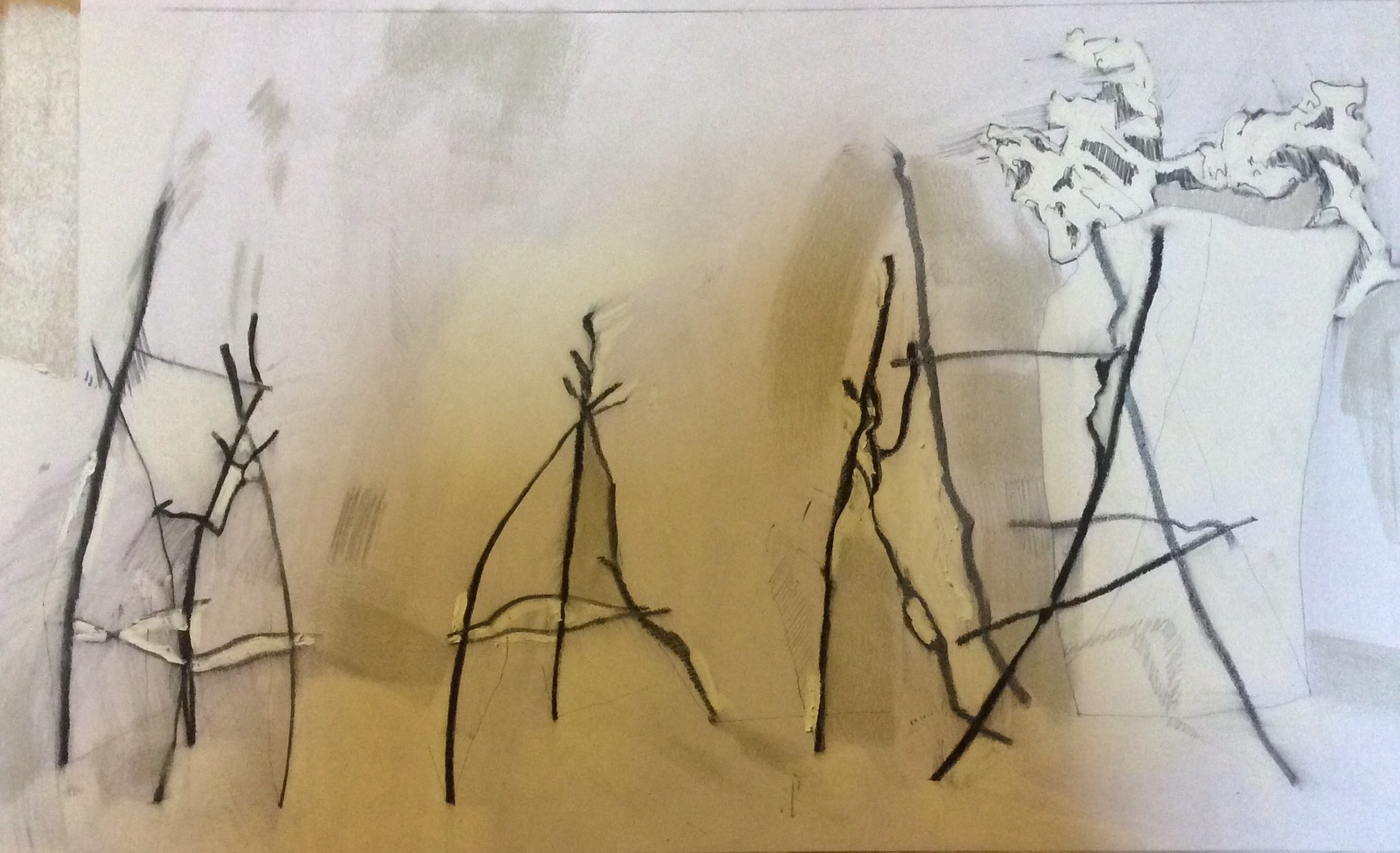 Drawing Saturday 30th May Posted on May 30, 2015 by iansblog Reply Bird Catchers? Exploration of Space. Drawing of still life set up in the studio. Approx 85×45 cm. The ochre is shadow on the photograph but I might keep it. Share this: Click to email a link to a friend (Opens in new window) Email Click to share on X (Opens in new window) X Click to share on Tumblr (Opens in new window) Tumblr Like this:Like Loading...