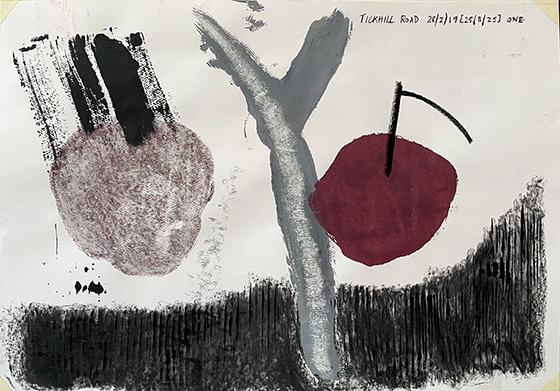 The pair literally reflect each other but also complement each other but the main reason for mono printing is for the quality it gives to the mark on the paper. In most of these the pair are one on cartridge paper and one, slightly smaller on watercolour paper.