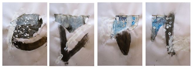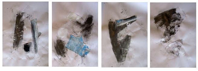 Establishing a repertoire of marks to explore an imagined space. That’s what I imagined myself articulating when I set out to write a blog post about a set of collage-drawings I made in June. These drawings are a transitional stage between sketches made in the garden and an imagined/virtual space. I make sketches and take photographs in the location, make bigger drawings from these in the studio, tear these up and use them as the base for the collage-drawings which are then transferred to virtual spaces as a preliminary to being recreated, and thus further altered in a manufactured physical space.