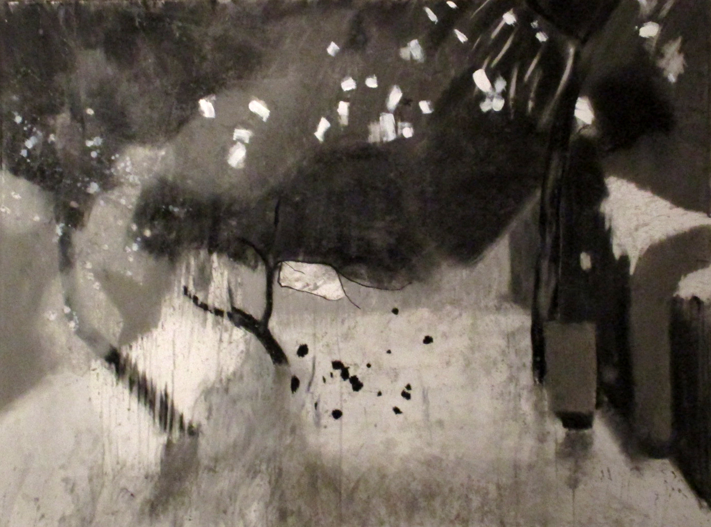 So these drawings are made to be a staging post, a base camp, before the assault on a greater challenge. They explore the nature of the spaces between the branches and twigs of the trees, the sky and the ground, the garden and the gardener, the now and the remembered. The space between the intention to make a mark and the making of that mark.