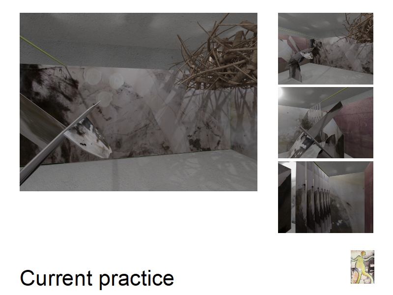 This is the first painting – I tend to find first versions are over involved, become fussy and subject to continual finessing, and make me wish there was someone there to tie my hands so that I stopped. These are placed on a drawing board on my turntable in my attic studio. Oil on Paper 90×90.